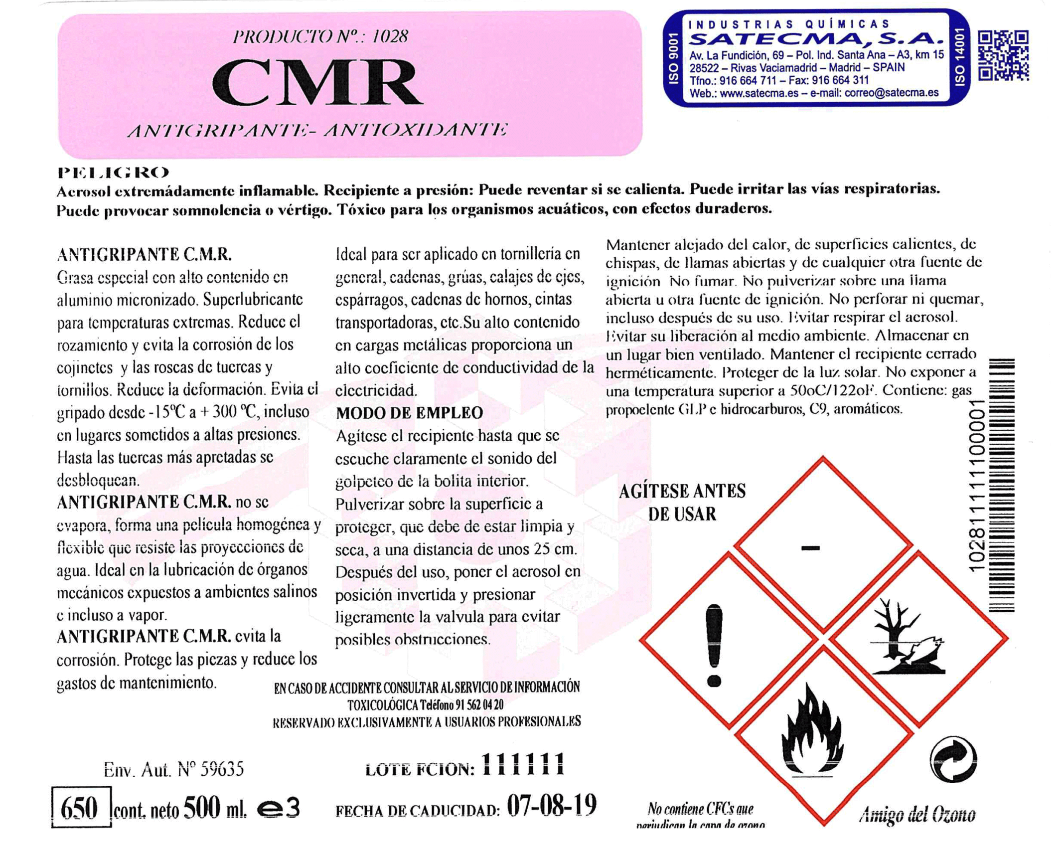 CMR es una grasa de propiedades antigripantes y antioxidantes con alto contenido en cargas metálicas de aluminio micronizado y envasada en forma de aerosol.