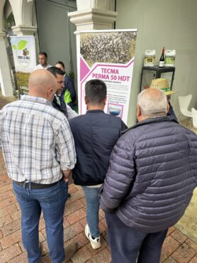 En esta feria hemos presentado productos especiales para agricultura como son abonos especiales, los fertilizantes FOL CRECIMIENTO y FOL MADUREZ, que ayudan a conseguir un mayor beneficio de los cultivos, nuestro nuevo producto el TECMA QUITOSAN, biprotector que ayuda a mejorar las defensas de la planta y los productos especialmente diseñados para el tratamiento de balsas de riego como el TECMA PERMA 50 HDT y el TECMA OXI-ECO, que ayudan a combatir el mejillón cebra.