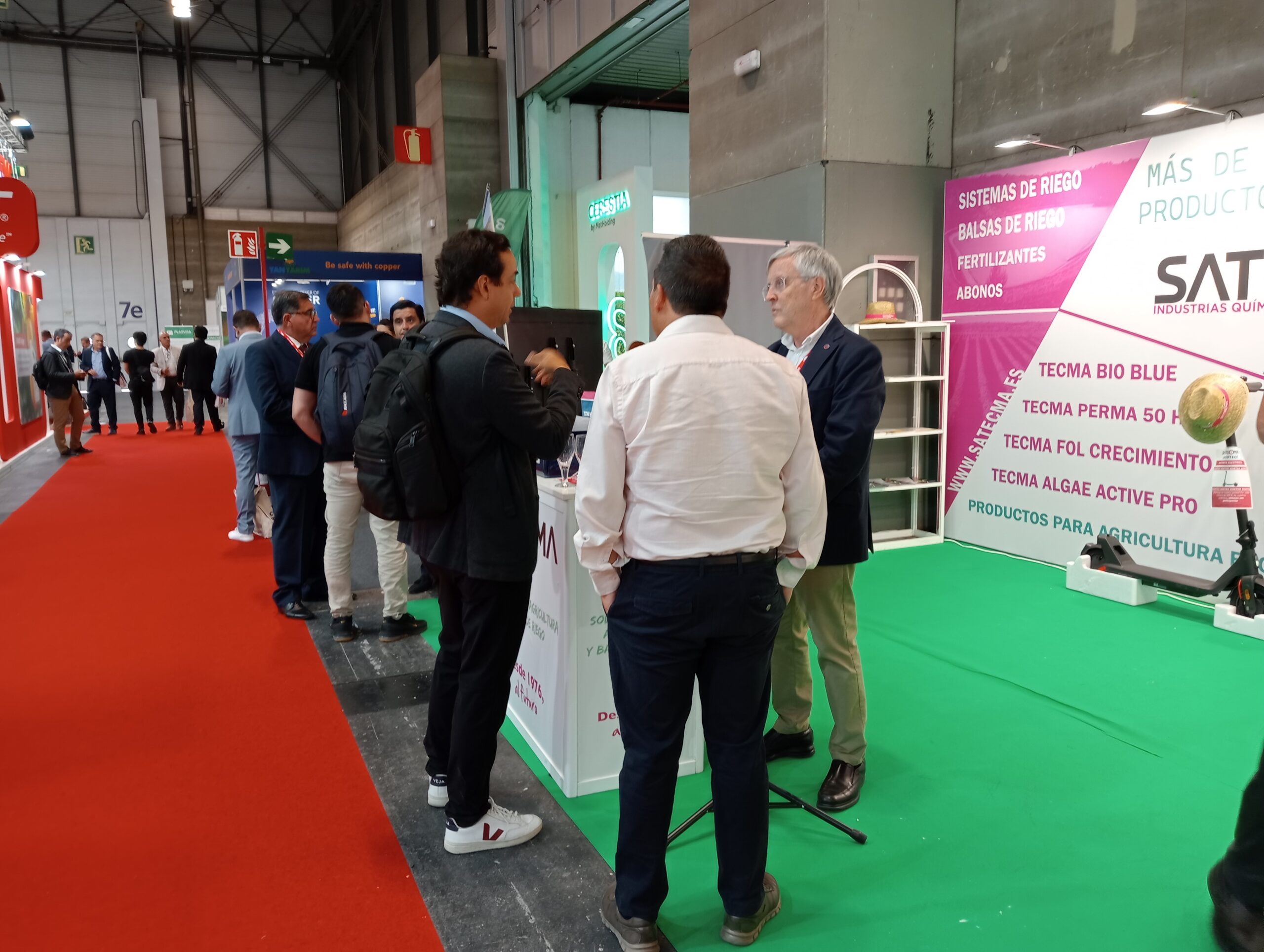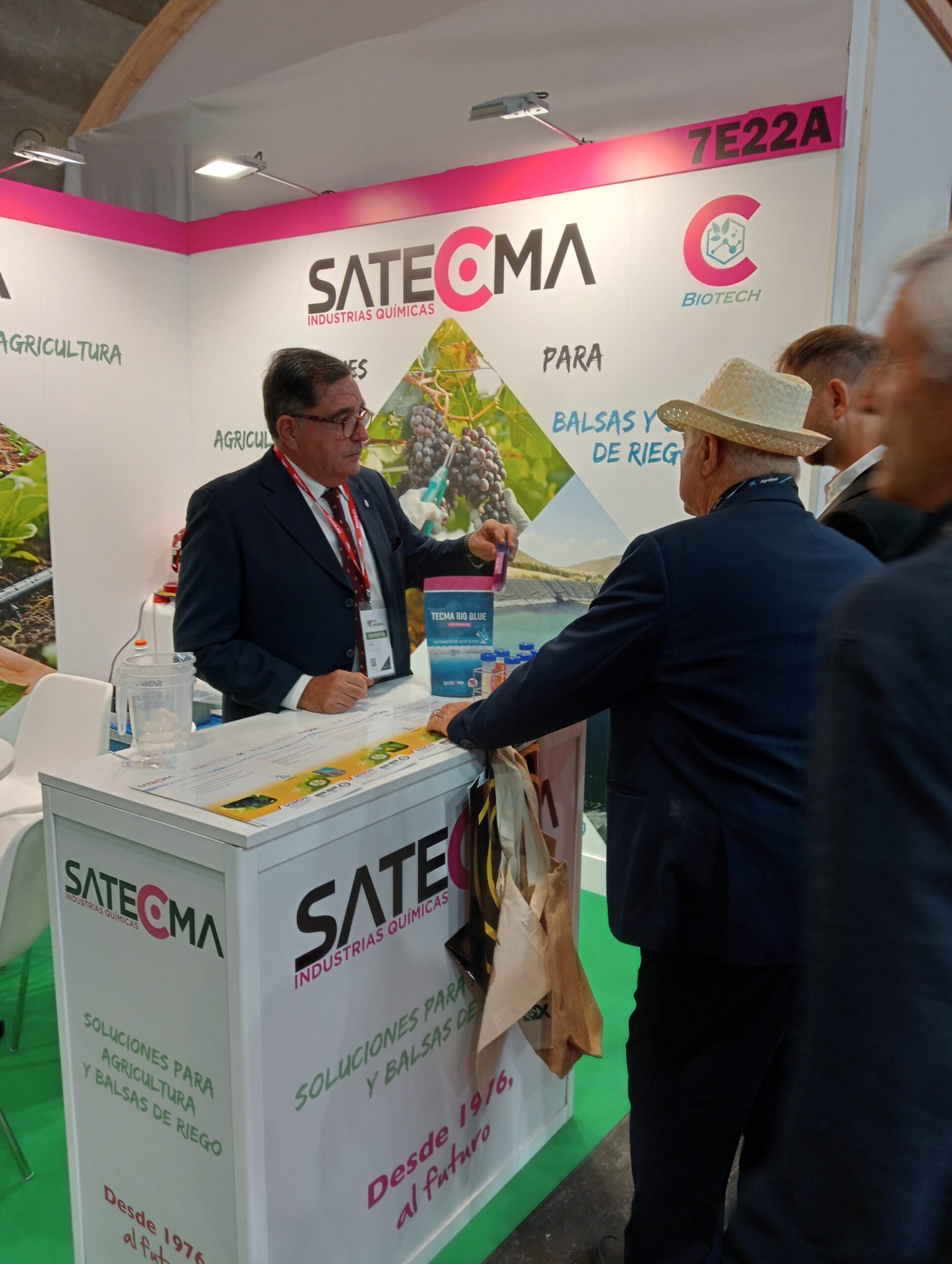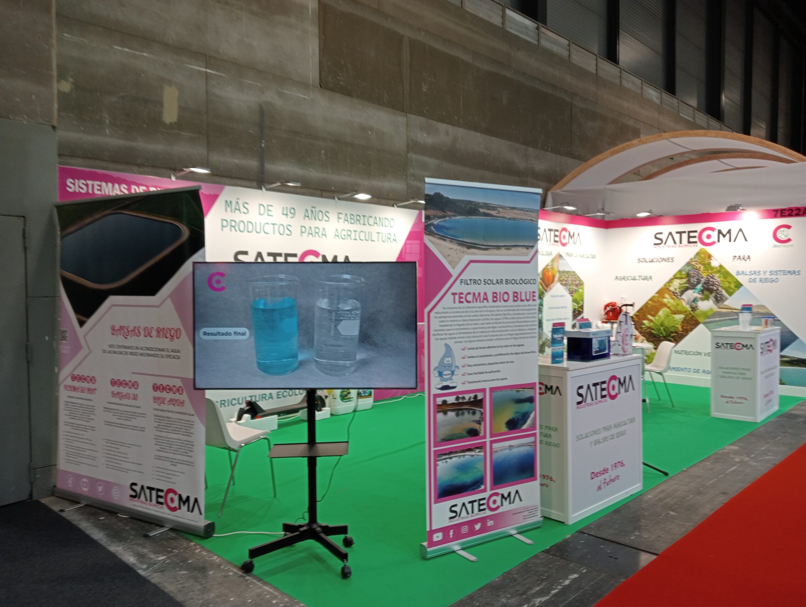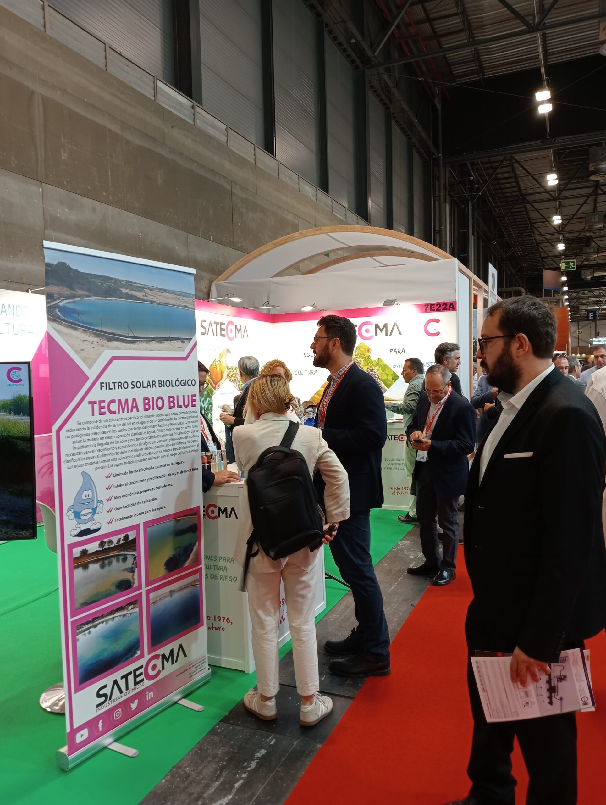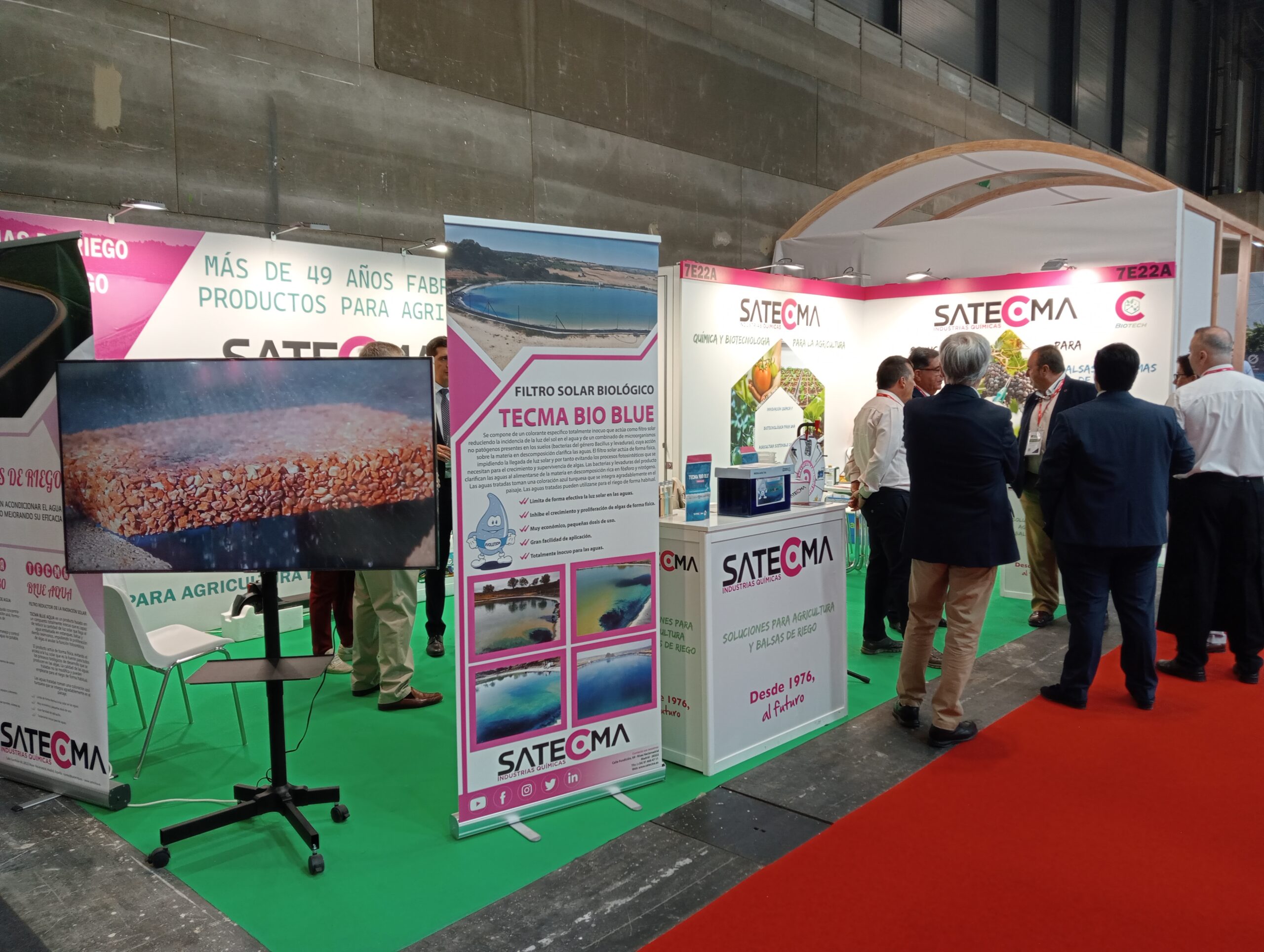 Todos aquellos que acudieron al stand pudieron ver los nuestros productos para tratamiento de balsas, como el TECMA BLUE AQUA (filtro reductor de la radiación solar) y TECMA BIO BLUE (filtro solar biológico) para las balsas de riego.