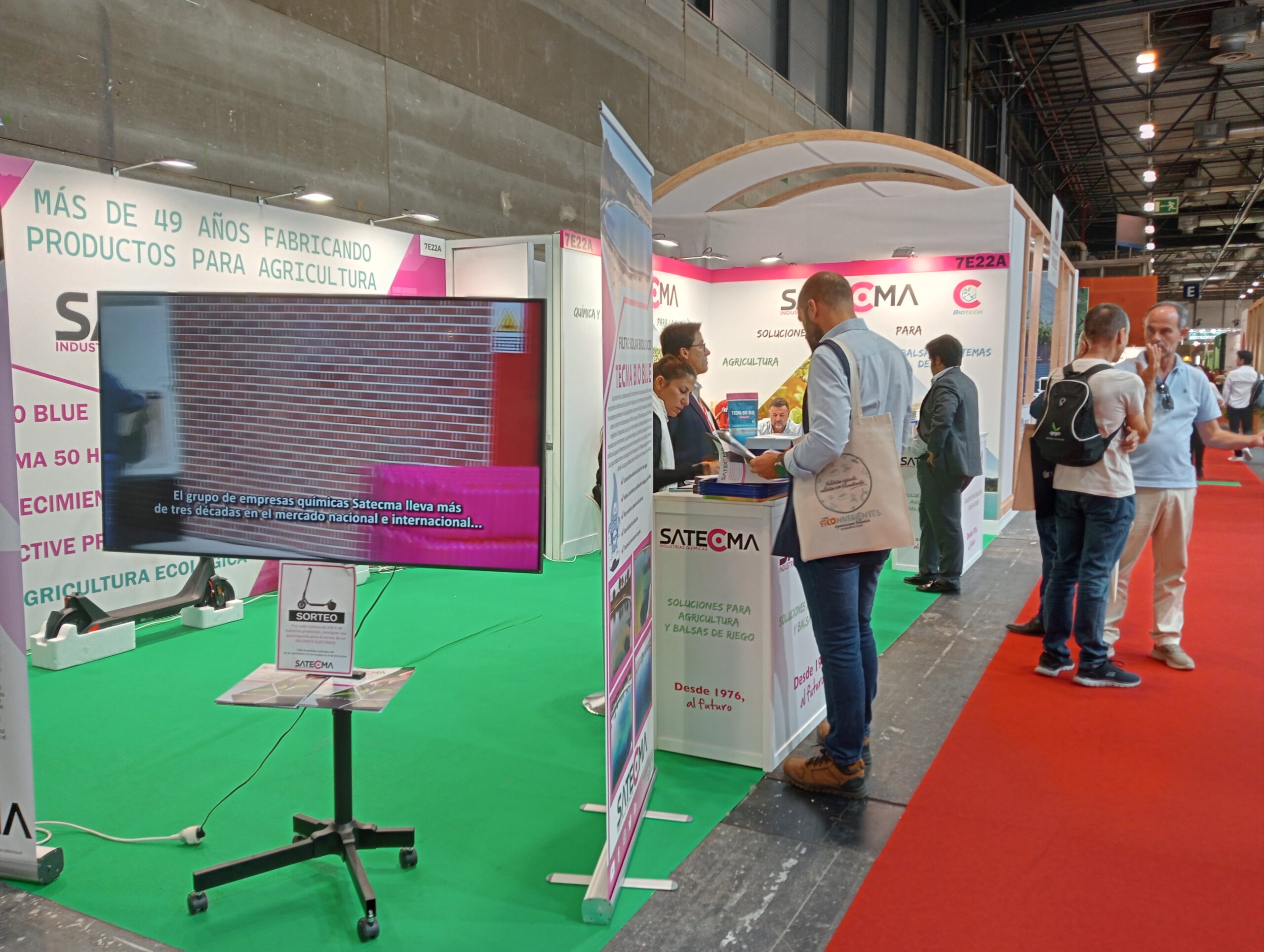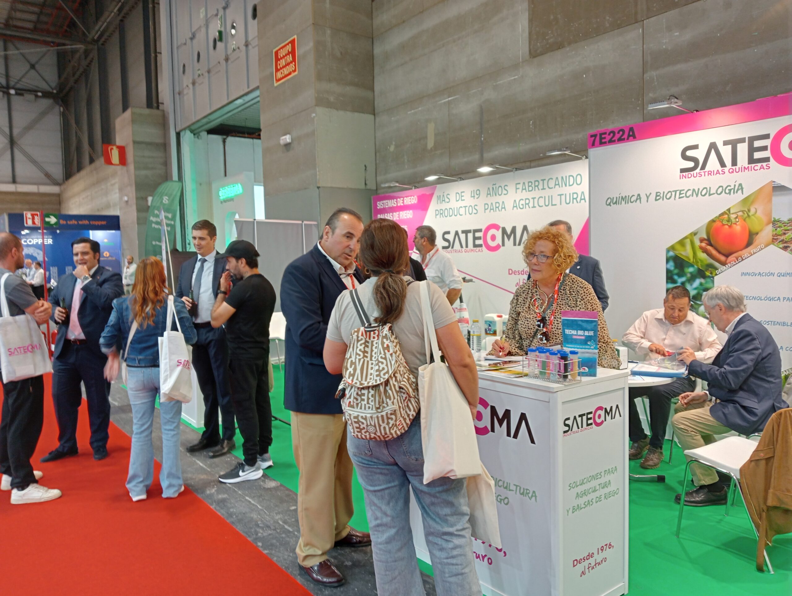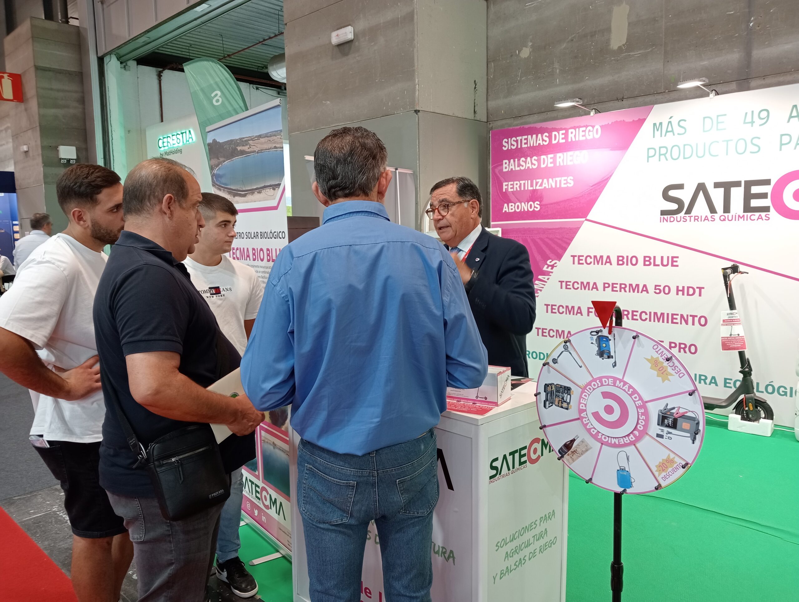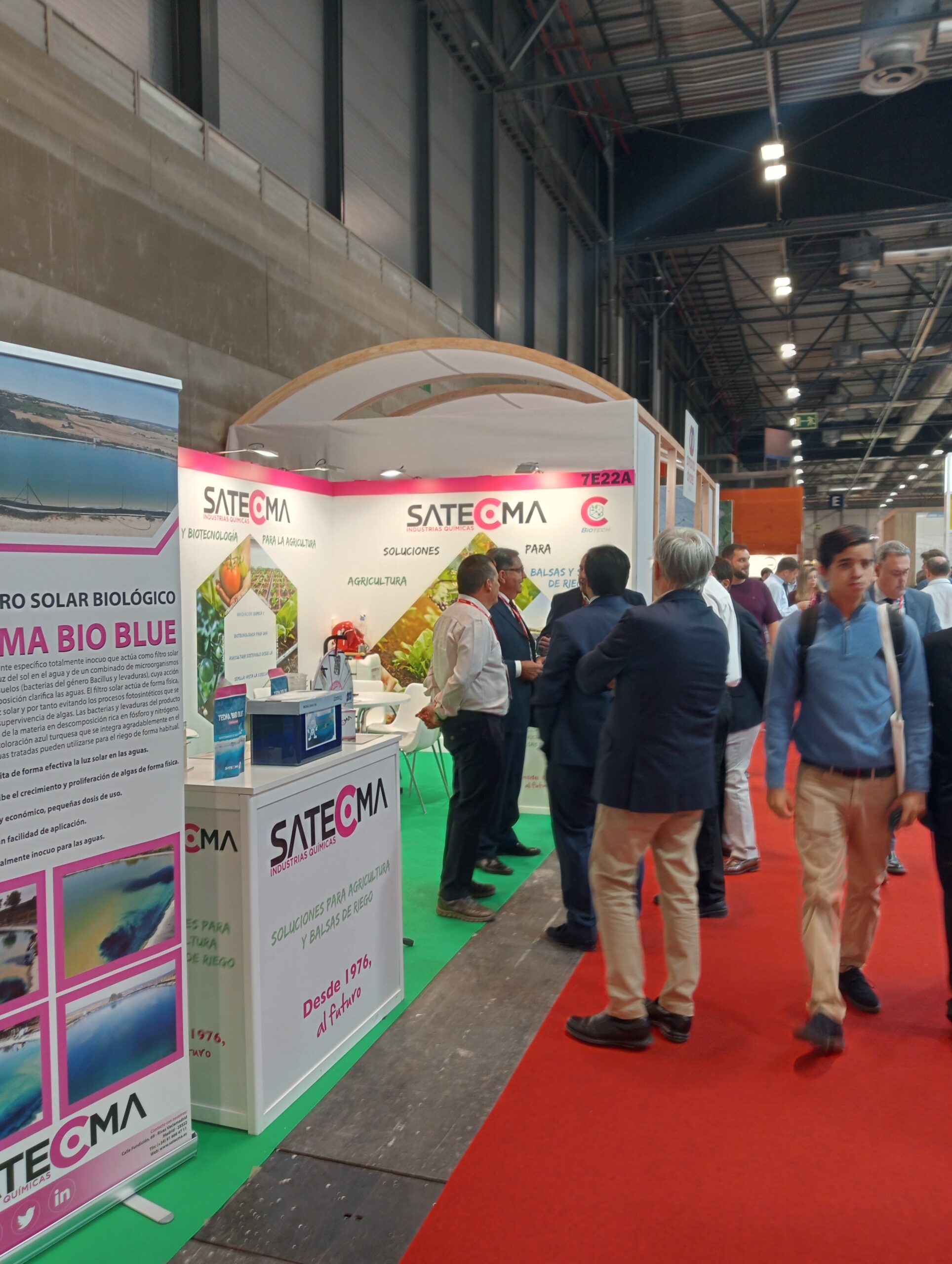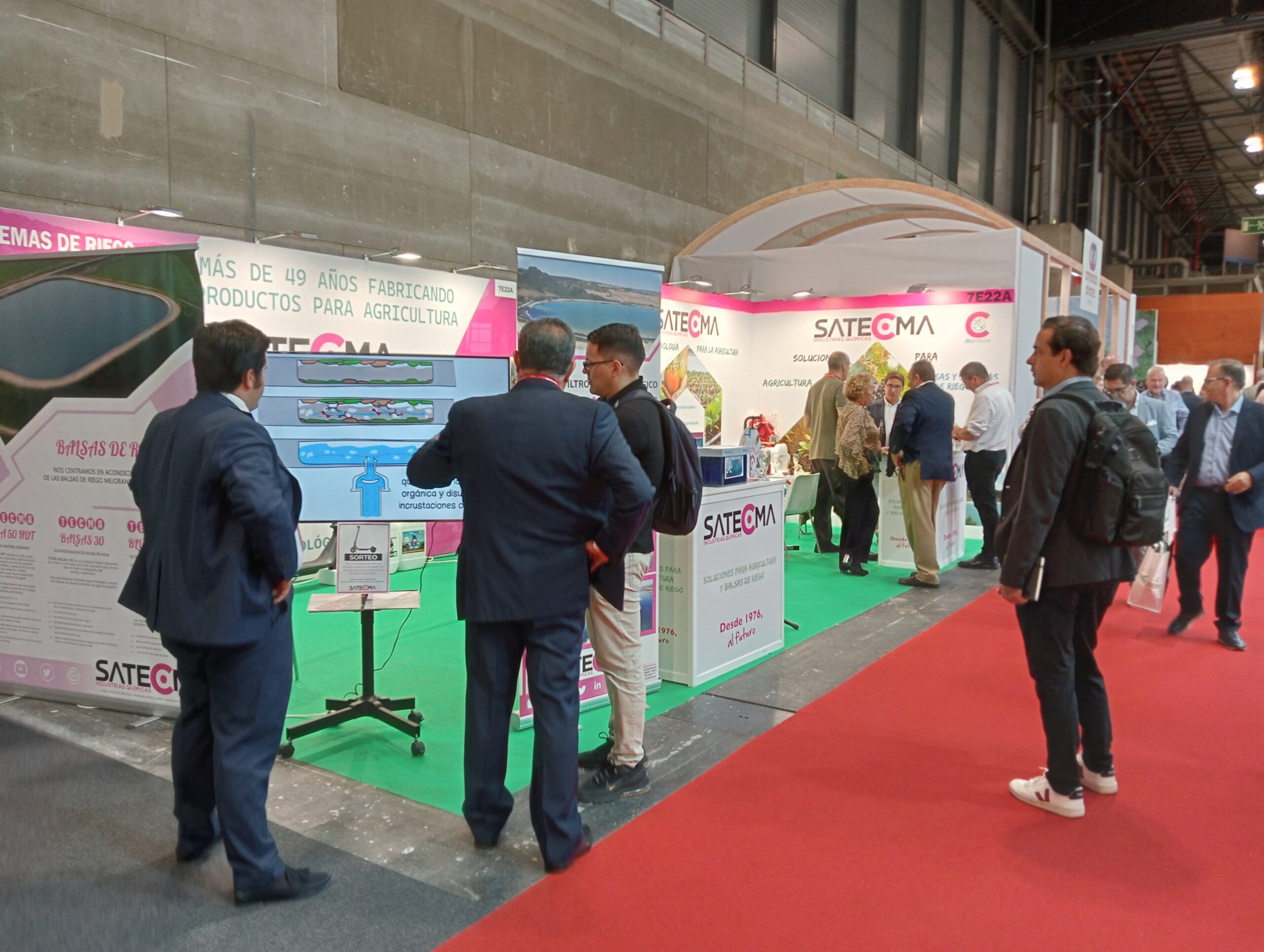 Todos aquellos que acudieron al stand pudieron ver los nuestros productos para tratamiento de balsas, como el TECMA BLUE AQUA (filtro reductor de la radiación solar) y TECMA BIO BLUE (filtro solar biológico) para las balsas de riego.